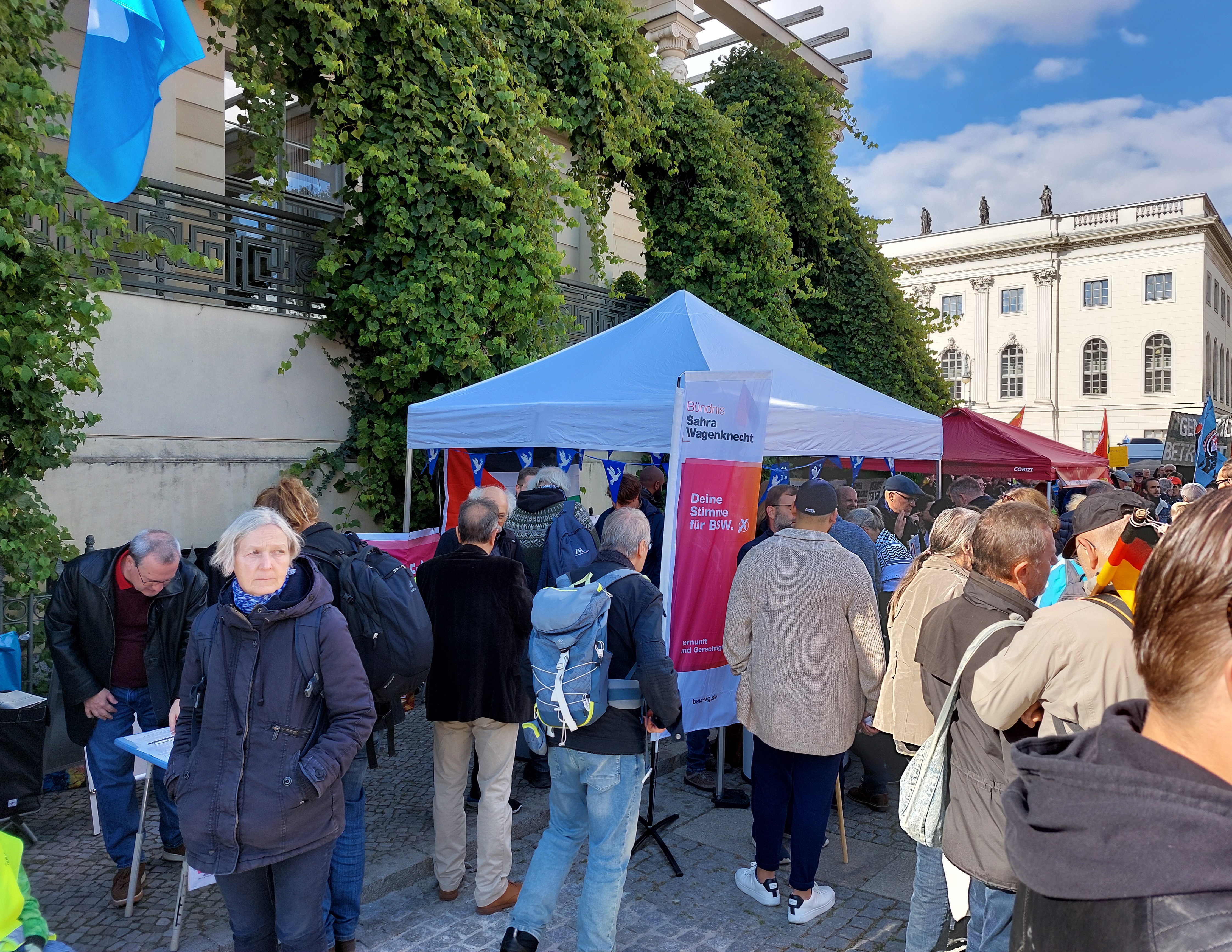 Am 13. September und am 3. Oktober versammelten sich jeweils rund 20.000 Friedensbewegte in Berlin. Das BSW Berlin und BSW-Mitstreiter aus allen Bundesländern waren gut sichtbar ein starker Teil der Demonstrationen. Sahra Wagenknecht am 13.9. und Christian Leye am 3.10. hielten kämpferische Reden und machten deutlich: Die Friedenspartei in Deutschland ist das BSW.